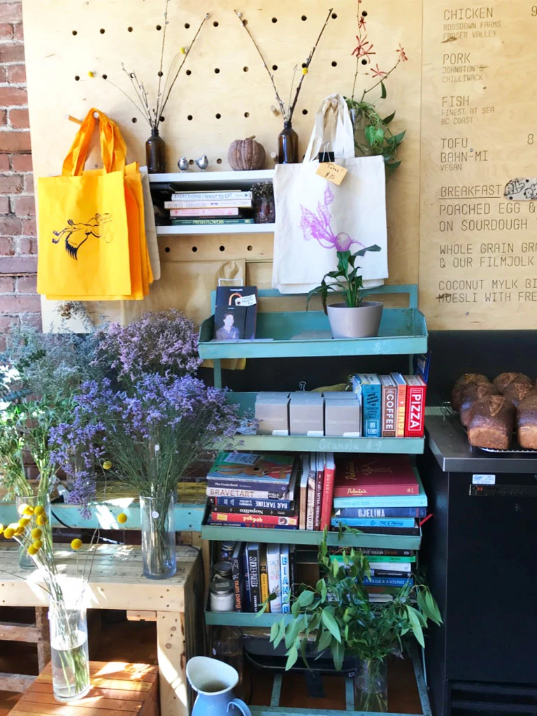 On one such hot spring day, we found ourselves looking for a good brunch spot. The Birds And The Beets was a cafe I had bookmarked sometime ago, and we made our way to its Gastown location. The place has ample seating and is bright and airy, and there’s a tiny nook next to the ordering counter with shelves full of books and fresh flowers.