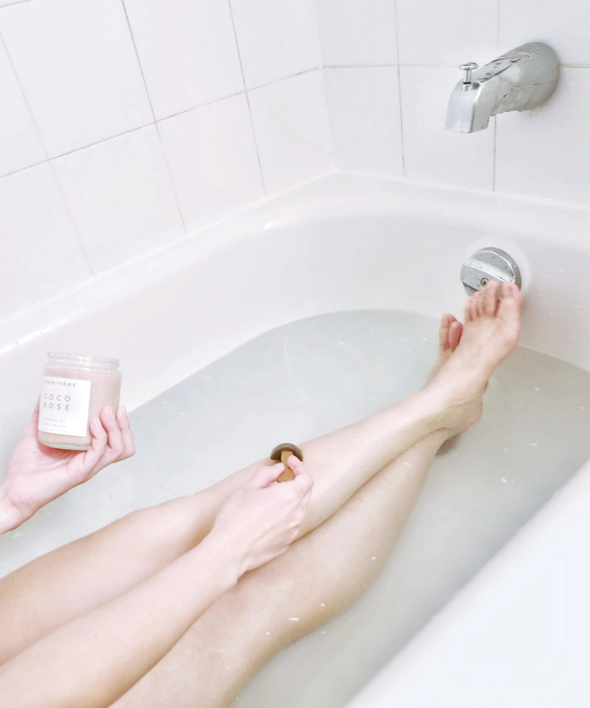 How I usually use a body scrub: After a quick rinse in the shower, I scoop a dollop out using my fingers or a spatula (like what you see above) and spread it all over my body from the neck down, concentrating on areas that are particularly dry like elbows, knees and heels. I let it “rest” for a minute or two, then wash it off thoroughly with warm water. And there you have it: A DIY spa sesh at home!