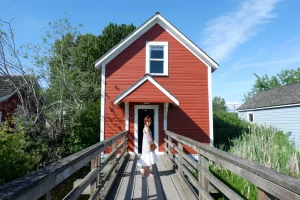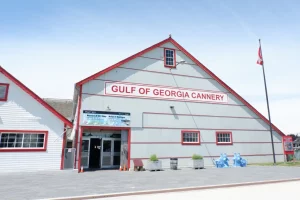 Essentially, the shipyards are an eight-acre cluster of heritage buildings along the Fraser River, and showcases a mix of canneries, boatyards and residences. Seeing how people lived in the past was the most intriguing aspect for me. The workers were a varied mix of Japanese, indigenous peoples and Caucasians, and they mostly lived in large wooden bunkhouses. The managers/bosses, meanwhile, had very English-style abodes – complete with floral wallpaper, lace tablecloths and the like. They lived in individual houses built on stilts (like the red-walled house you see in my photo).