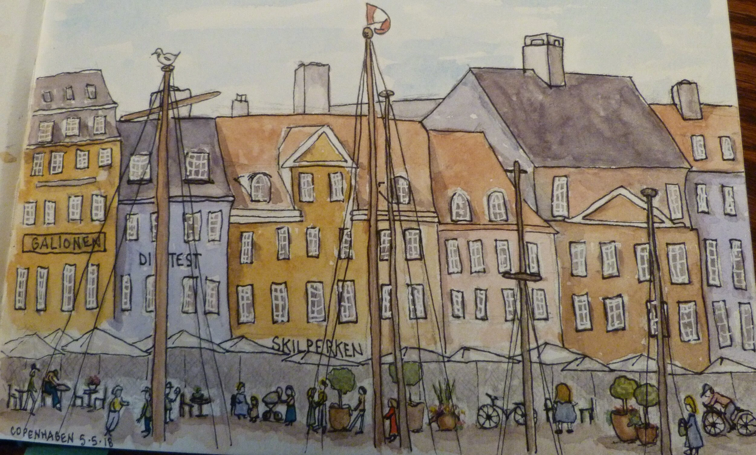 My husband and I took an all-day train from Prague to Berlin a few years ago and sat across from a Polish business woman. I opened my journal and painted a simple version of the alphabet, decorating the letters with a bright palette of toys and children’s paraphernalia. As the woman prepared to disembark hours later, she placed her hand on my shoulder and thanked me. She said it was a most restful train ride, just watching me paint. I love that about illustrated journaling. It’s art on the go and people feel welcomed into it. It doesn’t have to be good, or even representative, just fun and hospitable.”