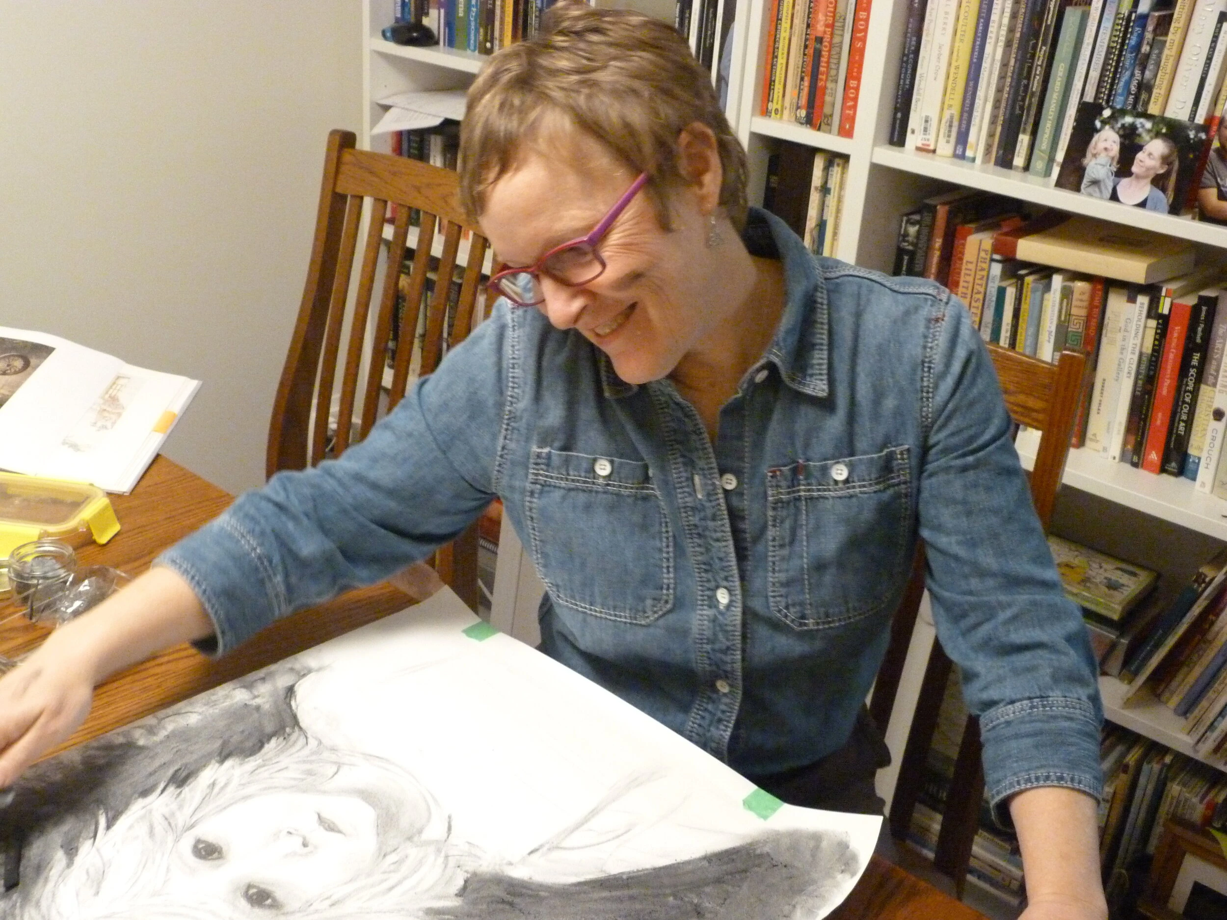 “That’s a hard one. I sketched a lot as a kid, but I don’t remember any work in particular. 15 months ago, I sat down with a rather large piece of mixed media paper along with a piece of soft charcoal and sketched a head and shoulders piece of 19th century fantasy writer, George MacDonald. My reference photo was smallish and black and white – taken by professional photographers, Elliot & Fey, in 1892. I know what people mean when they say they enter a timeless zone when they create. Three hours later, George MacDonald stared back at me from the page. I was hooked.”